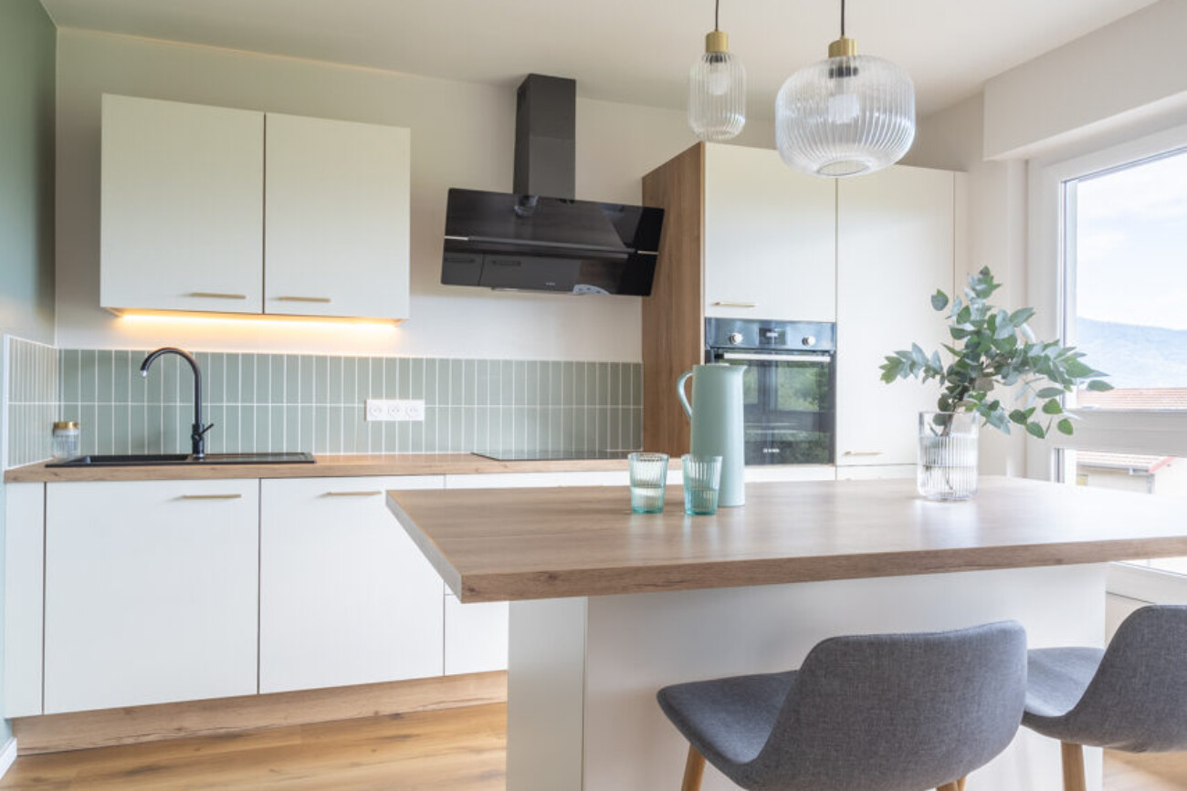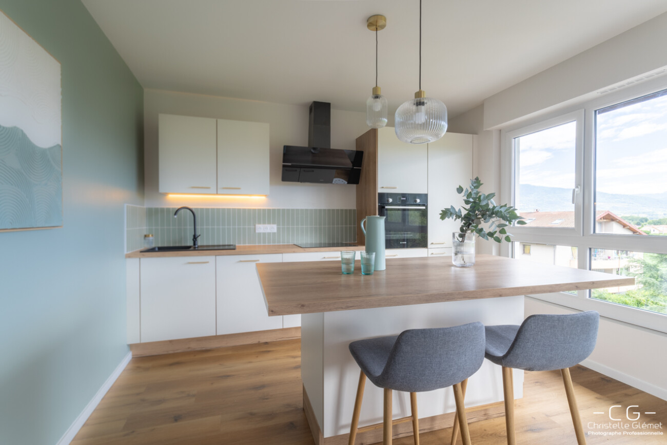 Rénovation complète pour ce bel appartement de 66 m² avec vue sur le Môle, la montagne surplombant la vallée de l’Arve.